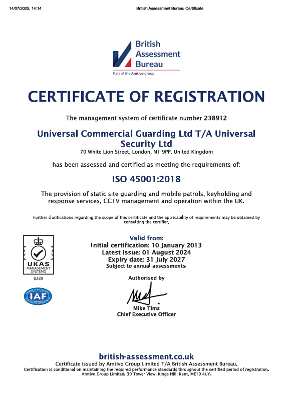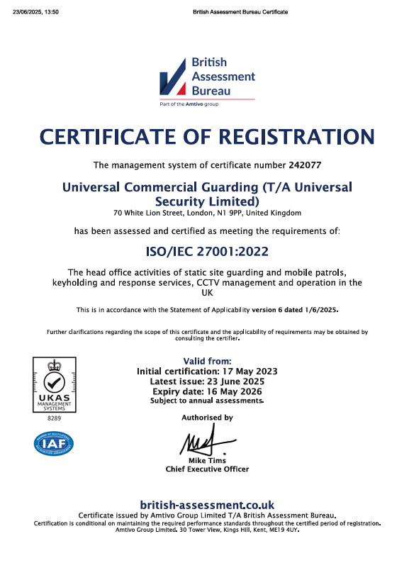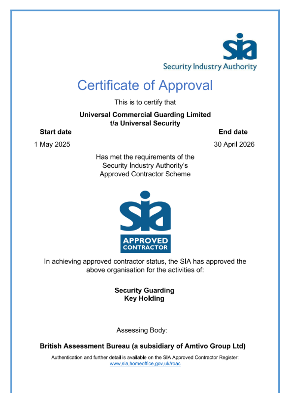 - Security Industry Authority Approved Contractor (SIA ACS)