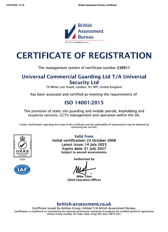 Here at Universal we operate to the highest industry standards to provide you with the assurance that the service you receive meets internationally recognised quality benchmarks: